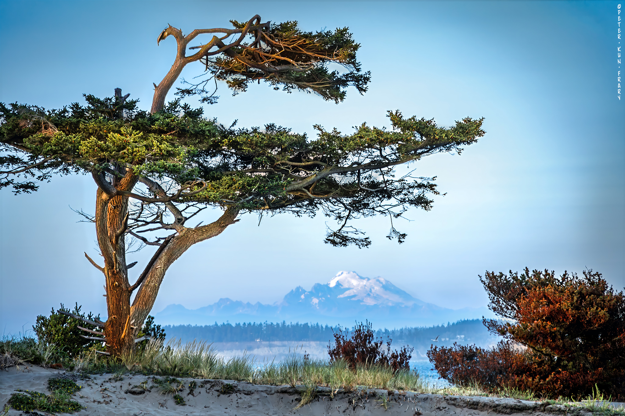 Same windswept conifer in soft light minutes before sundown. Koma Kulshan (Mt. Baker) seen from Point Wilson. I've shot this scene many times since the 1970s, and it looks great from any angle. The wind swept coastal conifers look like mammoth bonsai trees and make a fitting frame for the lighthouse, Koma Kulshan and the Strait of Juan de Fuca. EOS 80D and EF-s 18-135 3.5-5.6 IS USM |