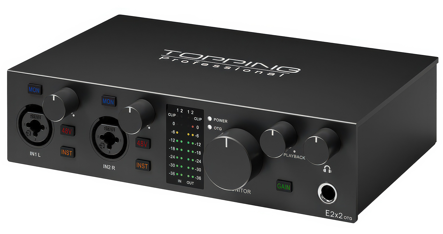 If you need a simple audio interface for solo instruments or voice, there are numerous two-channel models available for about $200 USD. The Topping E2x2 OTG, released late in 2025, is a newcomer to the audio interface market, staking a claim in the two-Benjamin club. Do the features and audio quality measure up to the likes of MOTU and Scarlett?